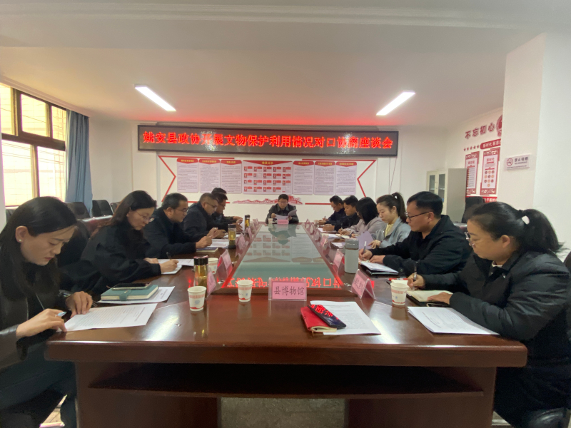 当日下午3点,对口协商座谈会在县文化和旅游局三楼会议室召开,会议由县政协副主席潘建勋主持,县人民政府办公室朱倩出席会议,县委宣传部、县公安局、县财政局、县住房和城乡建设局、县民宗局、县博物馆及对口协商工作组全体成员参加会议。县文化和旅游局汇报我县文物保护利用工作情况,全面梳理工作成效。县政协教科卫体和文化文史学习委员会主任许云代表对口协商工作组作主题发言,系统梳理调研发现的问题并提出针对性建议;参会人员围绕文物安全保障、资金投入、修缮技术、活化利用路径等方面深入交流,积极建言献策,凝聚起“保护优先、合理利用”的共识。